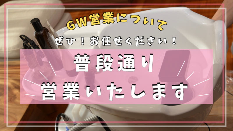 今年のゴールデンウイーク連休中も通常通りの営業を行い、カットやカラーなどの施術を提供させていただきますので、どうぞご安心してご利用ください。